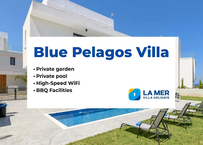 Larnaca internationell flygplats ligger inom 58 minuters bilresa och Ayia Napas skulpturpark finns cirka 6 km bort. Klostret i Agia Napa ligger cirka 6 km bort. Blue Pelagos Villa ligger ungefär 15 minuter med bil från Grekiska uddens nationella skogspark och inom 6 km från Kärleksbron.